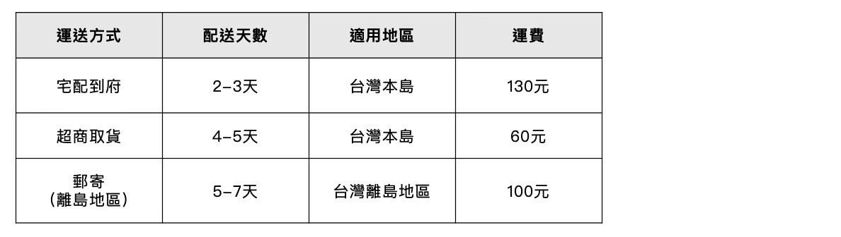 - 宅配:黑貓、新竹(僅限台灣本島)